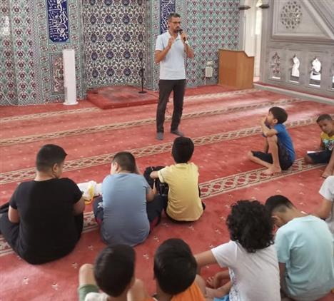 Erdemli Müftülük Vaizi Yaşar Elarslan tarafından Ulu Camii Yaz Kur'an kursunda eğitim gören öğrenciler ziyaret edilip “Besmele ve Selam Verme”kavramları üzerine sohbet gerçekleştirdi ardından çocuklardan gelen soruları cevaplandırdı.