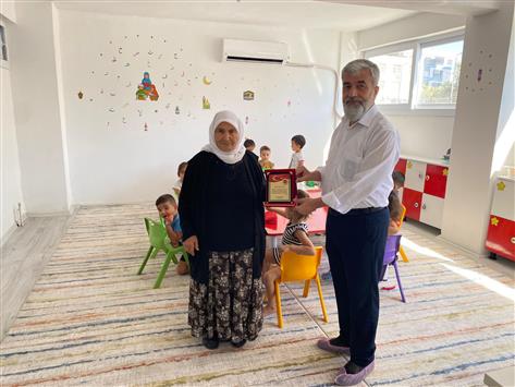 Müftü Dr. Hasan Selam, hayirsever Ayse Atas`a plaket takdim etti