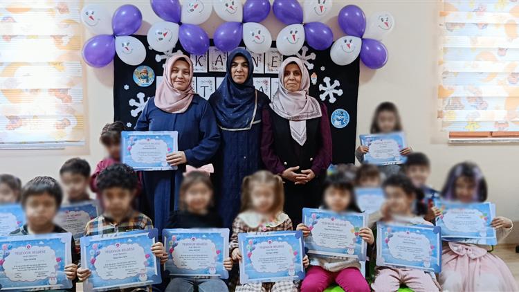 Beş aylık eğitim sürecinde çocukların davranışlarında gözle görülür olumlu değişiklikler yaşandığı dikkat çekti. Programda minik öğrenciler, kurs öğreticileri eşliğinde hazırlanan etkinliklerle karnelerini aldı. Ayrıca Müftü Yardımcısı Mert ve öğreticiler tarafından öğrencilere çeşitli hediyeler takdim edildi.