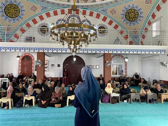 İl Müftü Yardımcısı Ümmühan Mert Mezitli İlçesi Hanife Savran Camii'nde mukabele sonrasında hanımlara hitap etti.