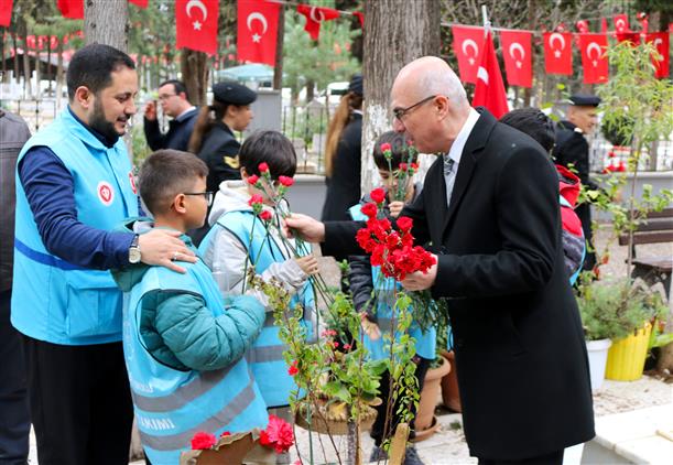 Toroslar Eyyüb el-Ensari Camii İmam-Hatibi Şeref Yıldız’ın Kur’an-ı Kerim tilavetiyle başlayan törende İl Müftüsü Topal yaptığı duanın ardından şehitlerimizin kabirlerini ziyaret ederek karanfil bıraktı ve şehit aileleriyle bayramlaştı.