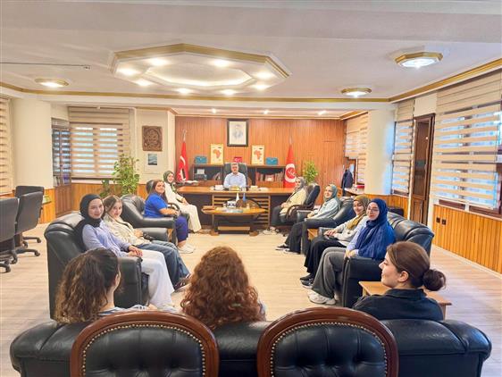TDV Tarsus Ticaret Borsası Yükseköğrenim Kız Öğrenci Yurdunda misafir olarak kalan öğrenciler, Yurt Müdürü Betül Onay ve eğitimden sorumlu Esmanur Pattabanoğlu ile birlikte İlçe Müftüsü Murat Akçay’ı makamında ziyaret etti.