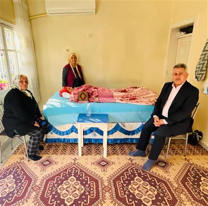 İlçe Müftüsü Murat Akçay, hasta ve yaşlı olan Hatice Hanım’ı evinde ziyaret etti. Ziyarete Türkiye Kuvayi Milliye Mücahitleri Derneği Tarsus Şubesi Üyesi Rukiye hanım da katıldı.