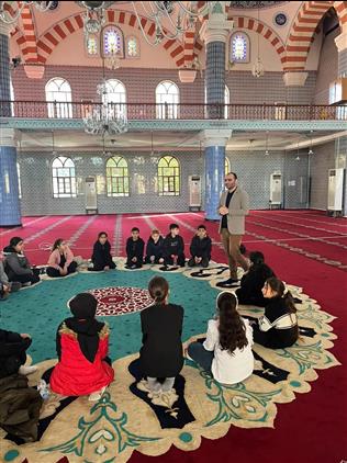 Muğdat camimizde henüz günah kirleriyle kirlenmemiş çok önemli ve çok değerli misafirlerimizi, Akdeniz İmam Gazali Ortaokulu öğrencilerimizi ve öğretmenlerini gülsuyu ile karşıladık, sohbet ve duadan sonra güllü lokumla uğurladık.